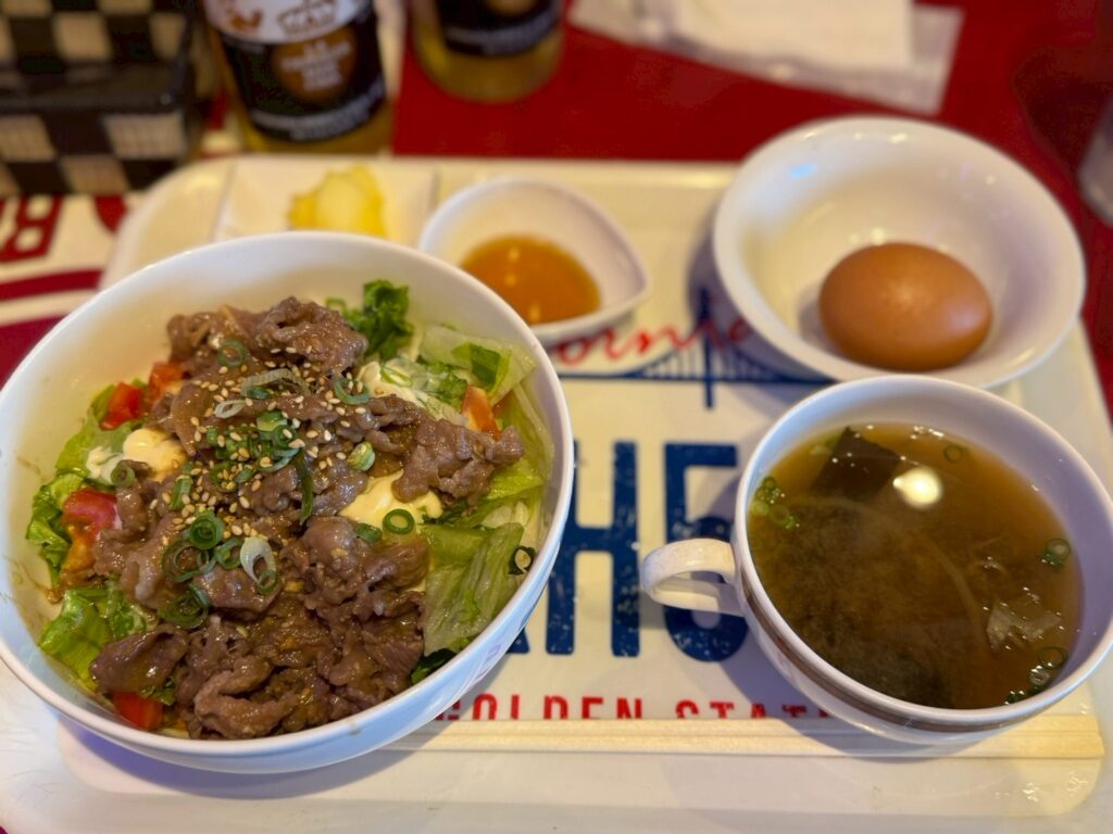タコライス風の漬け肉丼で、サラッとした口当たりとまろやかな味わいがとても美味しかったです!