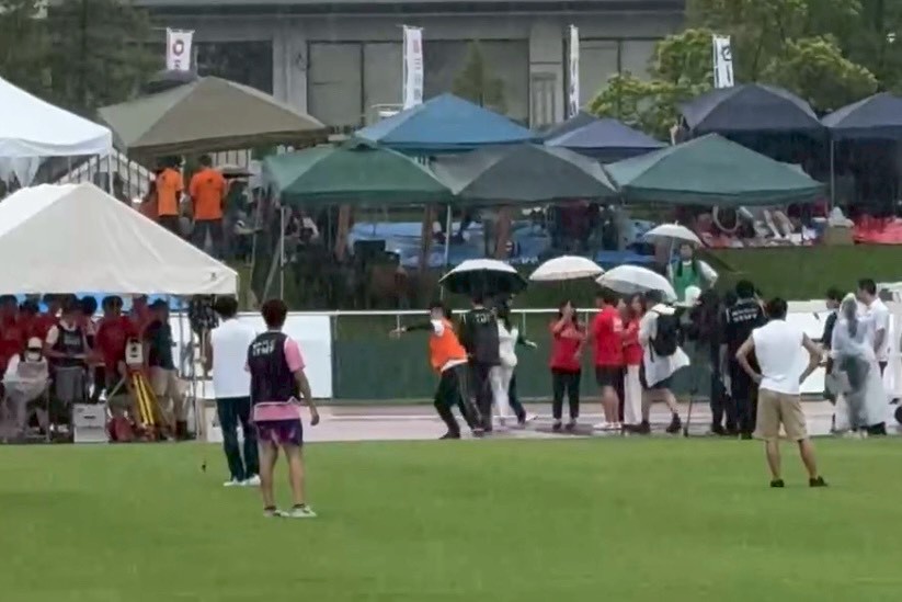 小雨が降りしきる中行われた「大人の大運動会」は走り幅跳びや50m走、4,000mリレーといった陸上競技だけでなく、